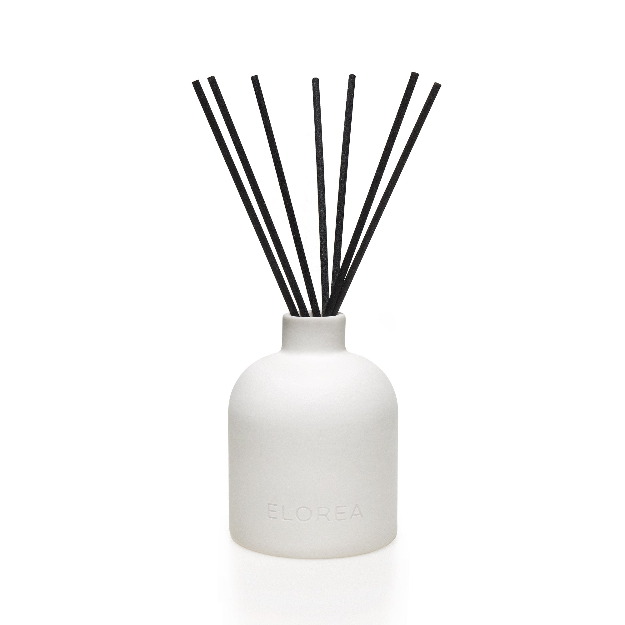 The set includes a ceramic vessel, a diffuser solution of your choice, and a pack of reed sticks.