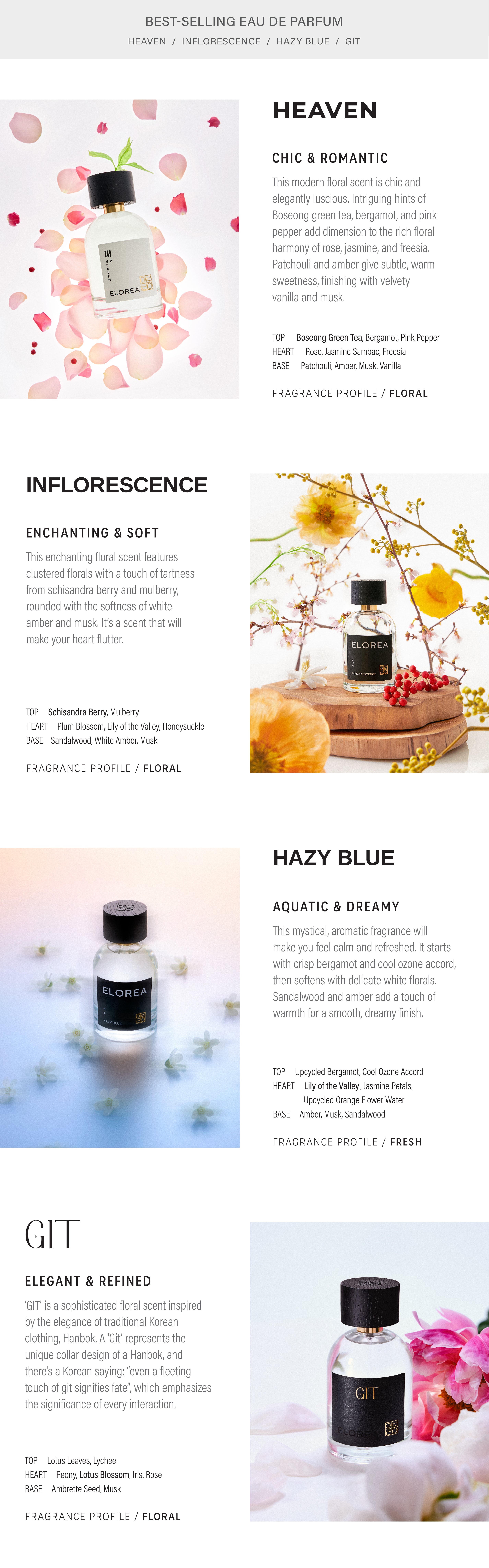 Experience the full collection with the purchase of our discovery set. Every discovery set comes with a voucher of equal value, which you can use towards a full bottle purchase. It can be applied to either 50ml or 100ml. Please note that this voucher cannot be combined with other promotions. This voucher only works online at Elorea.com and will expire in 30 days from the date of purchase.